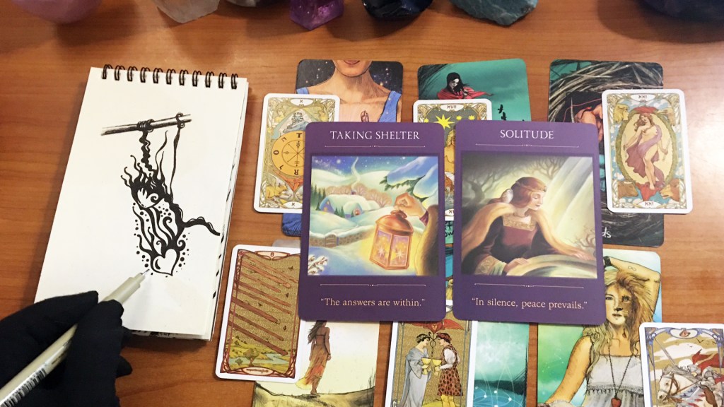 Tarot & Art Readings Combining tarot and oracle card readings with live intuitive art sketches from meditation, artist Laura Zollar weaves a timeless story for collective viewers, in an intimate setting. Instagram YouTube